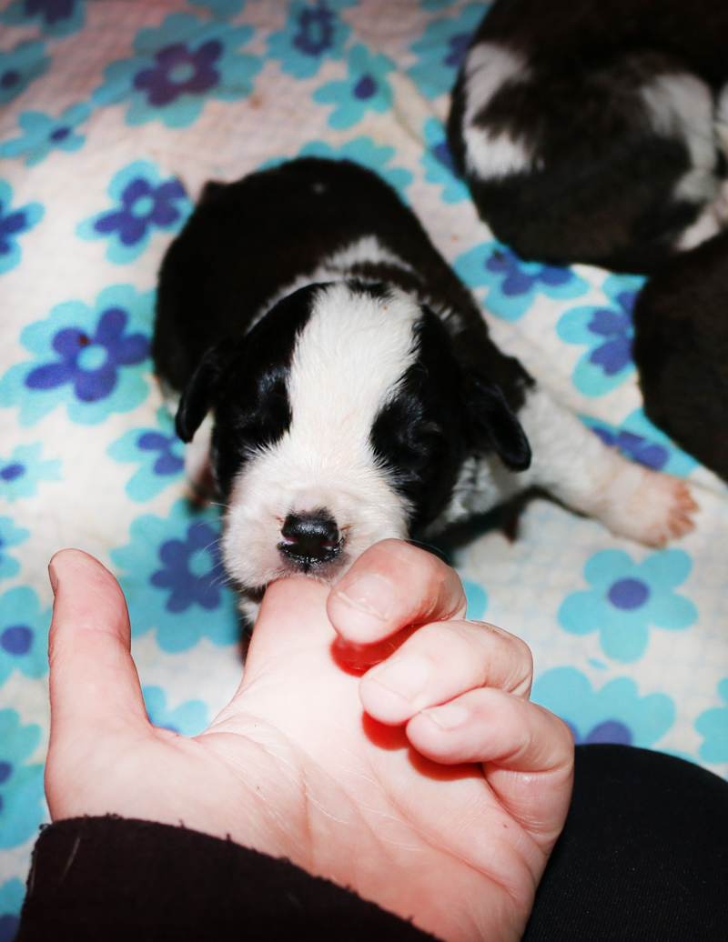 Heute haben wir unsere Welpen wieder gewogen und das erste Mal entwurmt. UND die Zwerge haben ihre Augen jetzt auf